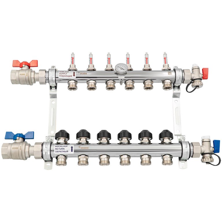 — Состоит из двух распределительных труб 1" - подающей и отводящей линии, подключение возможно с обеих сторон.