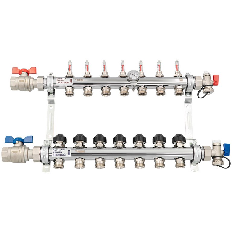 — Состоит из двух распределительных труб 1" - подающей и отводящей линии, подключение возможно с обеих сторон.