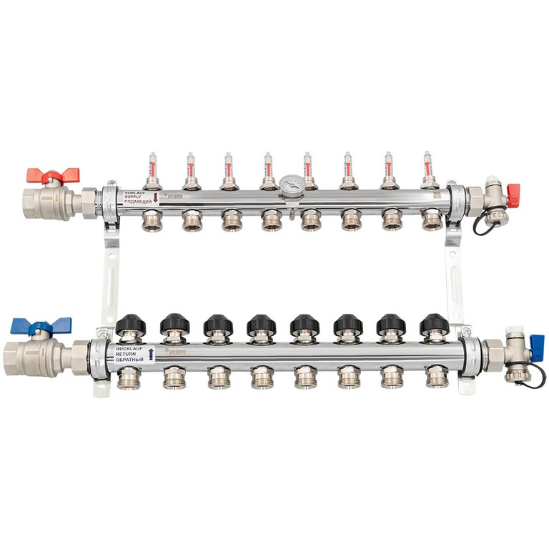 — Состоит из двух распределительных труб 1" - подающей и отводящей линии, подключение возможно с обеих сторон.
