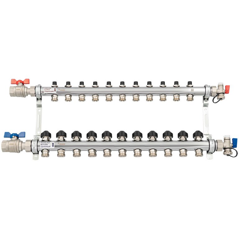 — Состоит из двух распределительных труб 1" - подающей и отводящей линии, подключение возможно с обеих сторон.