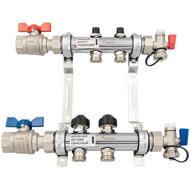 — Состоит из двух распределительных труб 1" - подающей и отводящей линии, подключение возможно с обеих сторон.