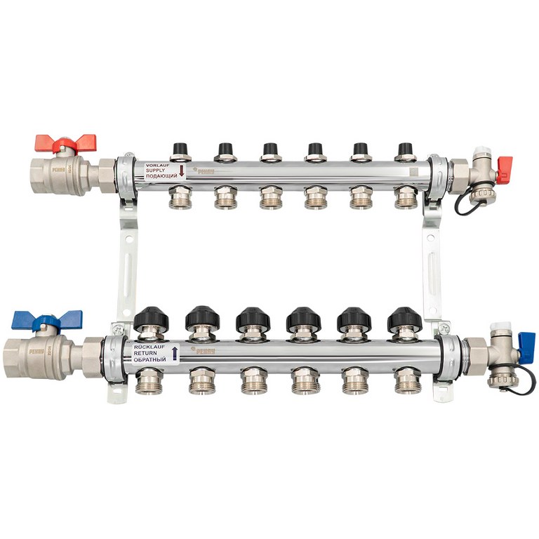 — Состоит из двух распределительных труб 1" - подающей и отводящей линии, подключение возможно с обеих сторон.