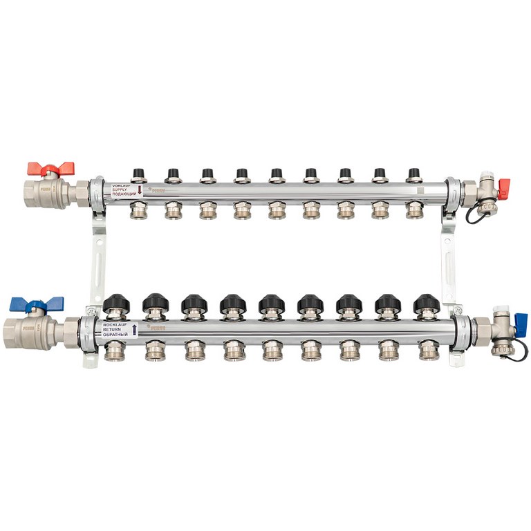 — Состоит из двух распределительных труб 1" - подающей и отводящей линии, подключение возможно с обеих сторон.