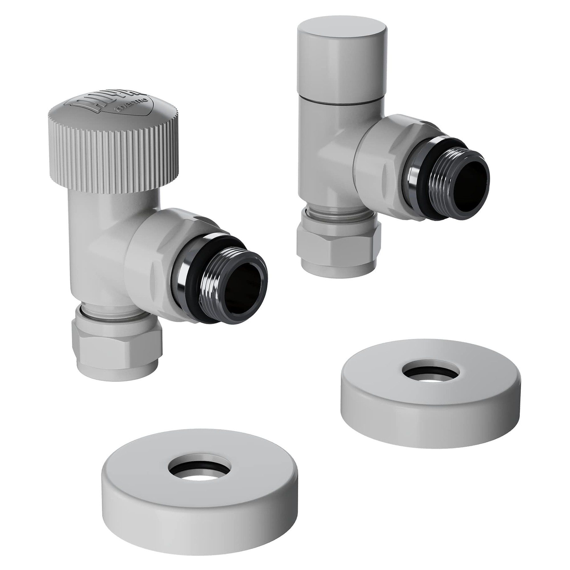 Термостатические наборы серии Design Pro поставляется в необходимой для чистового монтажа комплектации: клапан термостатический для установки на подающий трубопровод, запорный клапан для установки на обратный трубопровод, 2 гайки-фитинга для подключения клапанов к монтажной трубке 15 мм и 2 цельных латунных отражателя с внутренним резиновым уплотнением внутренним диаметром 15,2 мм.