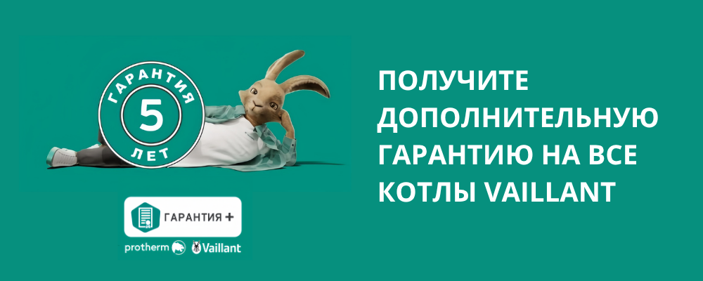 5 лет полной заводской гарантии от Vaillant Group Russia.